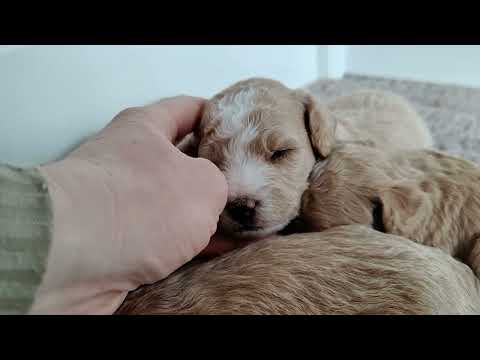 Så er der film fra de dejlige små goldendoodle 1b hvalpe. I denne film kan I se hvalpene i sin trygge fødekasse, og fornemme den gode kontakt de har med hinanden og søde milde mor Loa.❤